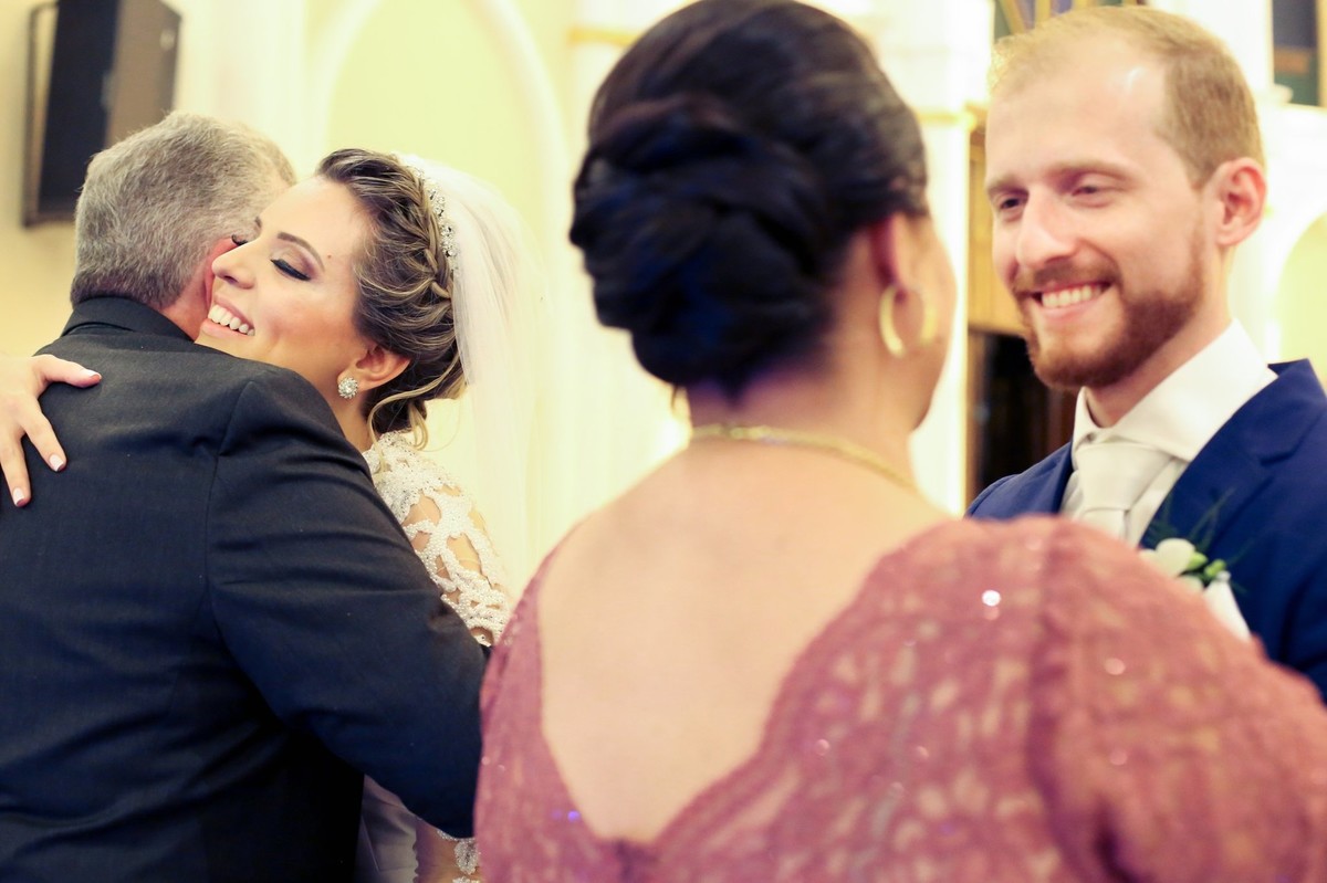 noiva sendo entregue para o noivo pelo pai no altar foto tirada nas lentes do fotografo thiago alt